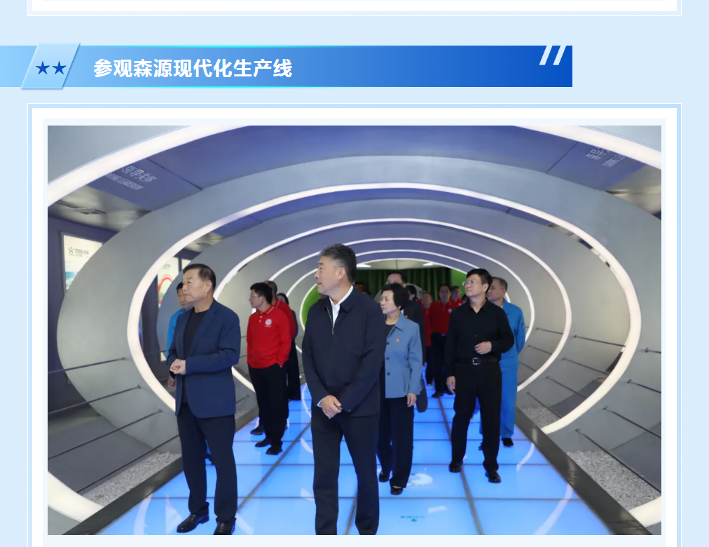 座谈会前,司林胜一行深入公司生产一线进行参观,详细了解森源集团的发展历程、企业文化以及科技创新成果,他们对森源集团智能化的生产线和高端装备制造能力表示高度赞赏。