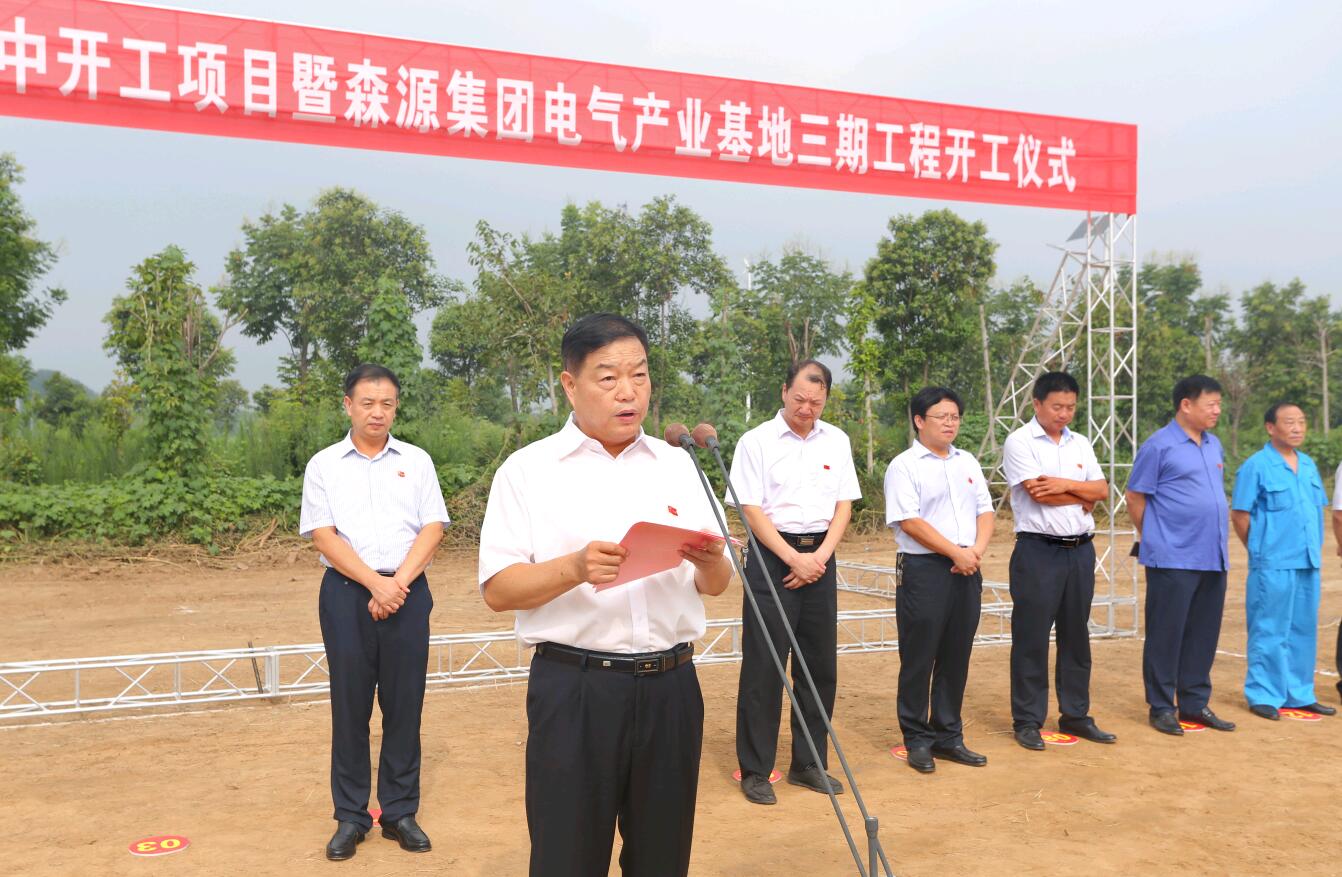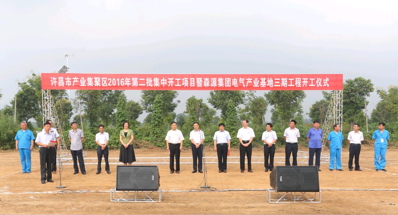 长葛市市委书记刘胜利到场祝贺并宣布开工令。长葛市市长尹俊营作重要讲话,他表示,森源集团电气产业基地三期工程的开工建设,在推动产业转型升级、加快产业集聚区建设的同时,有力地拉动了投资增长,为全市稳增长保态势提供了强有力的支撑。他要求长葛市产业集聚区和各职能部门要全力支持好、服务好项目建设和企业发展,主动帮助企业解决项目推进中遇到的各类问题,为项目建设创造一流的服务环境。
